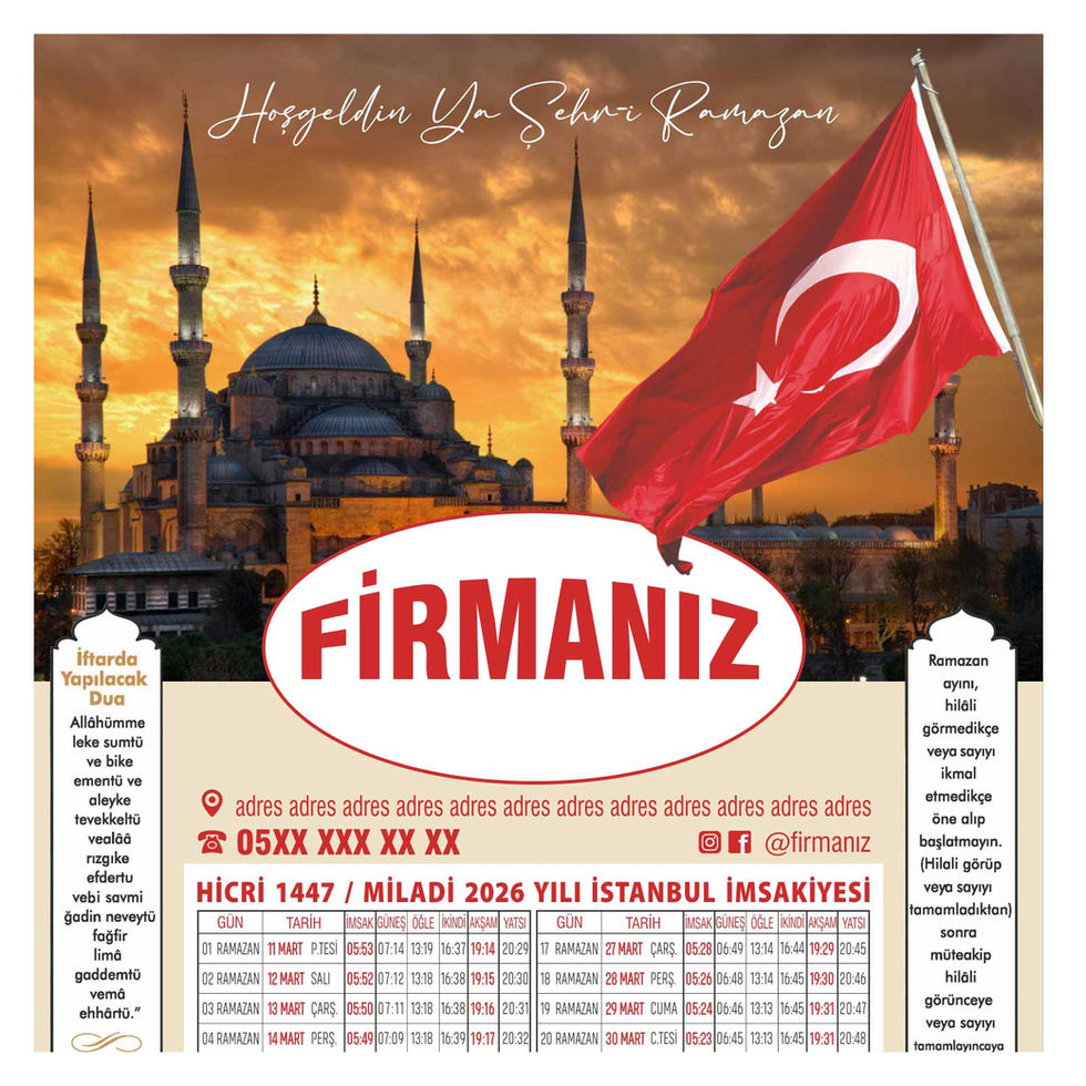 Özel Tasarım Tek Yön Baskı Karton İmsakiye
